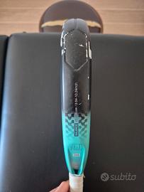 Pala Kuikma dal peso di 370-380 grammi, bilanciamento medio basso che la rende maneggevole rispetto al peso indicato. Ottima potenza garantita dalla gomma e piatti duri da cui si ottiene buon controllo sulla palla. Pala usata ma piatti integri. Non sono presenti crepe ma tanti salti di vernice e graffi superficiali.