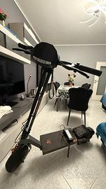 Il KuKirin G4 è un monopattino elettrico di fascia alta progettato per prestazioni elevate e utilizzo anche fuori strada. ⚙️ Motore e prestazioni * Motore: 2000 W * Velocità massima: fino a 70 km/h * Modalità di velocità: 20 km/h, 40 km/h, 70 km/h 🔋 Batteria e autonomia * Batteria: 60V 20Ah (circa 1200 Wh) * Autonomia: fino a 70–75 km * Caricatore: 67.2V 2A 🛞 Ruote e sospensioni * Pneumatici: 11 pollici, adatti anche all’off-road * Sospensioni: a molla, sia anteriori che posteriori 🛑 Freni e sicurezza * Freni: doppio disco (anteriore e posteriore) + freno elettronico * Illuminazione: sistema LED completo con più luci e indicatori di direzione 📏 Dimensioni e peso * Peso: circa 41,5 kg * Altezza da terra: 185 mm * Pedana: ampia (circa 510 × 210 mm) * Struttura: pieghevole 🧠 Extra e design * Display: intelligente e touch * Materiali: acciaio e lega di alluminio * Design: robusto, stile off-road 👍 Punti di forza * Motore molto potente * Elevata velocità * Ottima autonomia * Stabilità su terreni difficili 👎 Svantaggi * Peso elevato * Non pratico da trasportare * Velocità spesso non conforme alle normative stradali