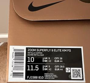 NIKE AIR ZOOM MERCURIAL SUPERFLY IX ÉLITE KM Scarpe originali Nike, modello usato durante i Mondiali 2022 da Kylian Mbappè. Numero 44, nuove con scatola e accessori originali. Mai indossate