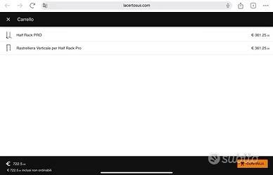 Lacertosus half Rack PRO con rastrelliera verticale e due pin addizionali per i dischi. Presenta qualche segno dovuto all’utilizzo ma si parla di graffi niente che comprometta l’efficenza. Vendo perché ho comprato il power Rack completo con la smith machine. NON CEDO LE SAFETY ARMS nè nient’altro che vedete in foto Prezzo a nuovo 361+361+50=772