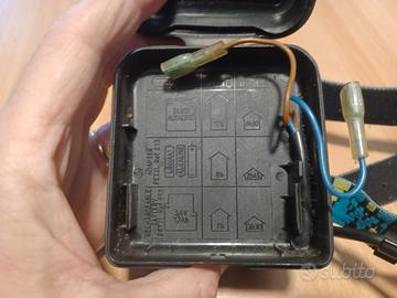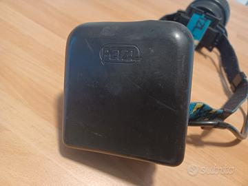 lampada frontale usata da casco, marca Petzl, vintage, storica lampada con lampadina tradizionale, lampadina di scorta, funzionante con batteria da 4,5 volt oppure pacco batterie Petzl.