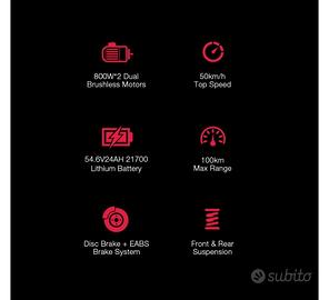 monopattino elettrico laotie L6 Pro 2 motori con solo 450 kilometri praticamente nuovo sempre tenuto in casa.molto potente di autonomia può fare quasi 100 kilometri poi dipende come si usa a 3 modalità di velocità. non spedisco solo consegna di persona