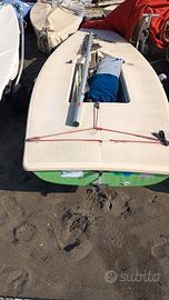 comprende scafo in discrete condizioni, deriva, timone, vang e tutte le scotte/cime necessarie, albero standard (la parte alta è quasi nuova), carrello in ottime condizioni adatto anche ad un 420/4270. Pacchetto completo 550 € trattabili.