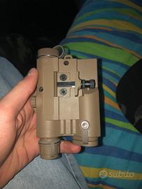 Laser rosso e torcia per fucile da softair. Pagato 25€ ma dato che la torcia non va lo vendo. Compresi contenitore e tasto remoto (il cavo nero) e ha l'attacco per la slitta dietro.