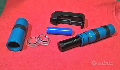 Puntatore Laser a luce verde con custodia stagna in PVC e metacrilato, impermeabile fino alla profondità di -100 metri.