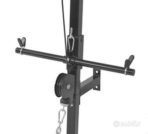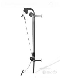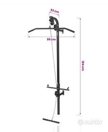Lat Machine con fissaggio a parete, ideale per chi vuole allenarsi seriamente a casa anche in spazi ridotti. La struttura è robusta, versatile e permette di allenare dorsali, braccia e spalle con la stessa efficacia delle macchine da palestra. Caratteristiche Principali: • Design Salvaspazio: Si fissa direttamente al muro, occupando pochissimo ingombro a terra. • Doppia Funzione: Sistema a carrucola alta (per Lat Pulldown e Tricipiti) e carrucola bassa (per Rematore o Curl bicipiti). • Dimensioni: Altezza totale: 194 cm Larghezza sbarra: 99 cm Profondità dal muro: 53 cm • Accessori inclusi: Sbarra lunga per dorsali e impugnatura corta per rematore/bicipiti. Stato del prodotto: L'attrezzo è in ottime condizioni, pari al nuovo. Solidissimo e pronto per essere montato. Preferibilmente ritiro a mano.