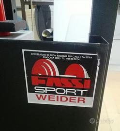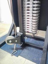 Cedo lat machine/pulley basso della Fassi Sport/Weider anni '80, costruzione robusta, in profilato 50x50mm. Pacco pesi in ghisa, suddiviso in blocchi da 5 chili per un totale di 100 chilogrammi. Carrucole in acciaio con scorrimento su cuscinetti a sfera. Ottime le condizioni generali, vernice perfetta.