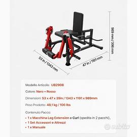leg extension leg curl da sdraiato , attrezzo 2in1 . va bene per dischi sia da 50mm che 25mm carico max 317,5kg Attrezzo nuovo ancora imballato spedizione disponibile da settimana prossima