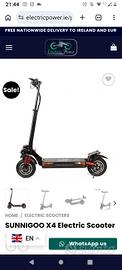 sunnigoo x4 velocità max (60) unico problema bisogna ripristinare i dati di fabbrica del monopattino perché l'ho manomesso accidentalmente e non so come si faccia a farlo resettare e non vorrei fare dei danni il monopattino è dotato di luci a led laterali e fari a led colorati è in buono stato si accende solo con le chiavi vendo così com'è perché me ne voglio liberare velocemente e non lo uso più... pagato 1247€ lo vendo a così poco perché non ne ho più bisogno unico proprietario il monopattino non ha tanti kilometri è stato usato 4 mesi ed è rimasto fermo un mese a causa di questo "problema " non richiede costi per la riparazione lo deve vedere qualcuno che se ne intende di ste cose io non me ne intendo ma è una cavolata dovresti staccare un filo che resetta i dati di fabbrica del monopattino e funzionerà non mi prendo la responsabilità di farlo