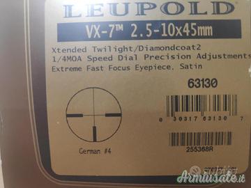 Vendo cannocchiale da puntamento Leupold VX-7L 2.5-10x45, tubo mm 30, reticolo Dot-4. Condizioni pari al nuovo.