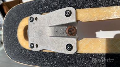 COSTRUZIONE: Sandwich in bamboo con laminazione in fibra di vetro triassiale e resina epossidica. Profilo camber con concave studiato per garantire ritorno elastico, reattività e stabilità in carving. Ritagli Drop-Through lavorati CNC per precisione di montaggio.