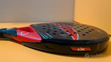 Vendo Racchetta padel Lok Maxx Hype 2 di Mike Yanguas per passaggio ad altro modello. Peso senza laccetto 345 gr, bilanciamento sui 26 cm. Ci sono dei piccoli salti di vernice in testa, ma la pala non ha crepe ed è stata utilizzata solo per un paio di mesi.