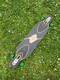 Costruzione in bamboo e fibra di vetro, shape simmetrico e concavo, ideale per carvate fluide ed energiche. Venduto dotato di truck e ruote, anch’essi in perfette condizioni. Piccolissima imperfezione in una delle due tail (penultima foto); elemento che comunque non incide minimamente nell’utilizzo della stessa. Una tavola semplicemente incredibile!