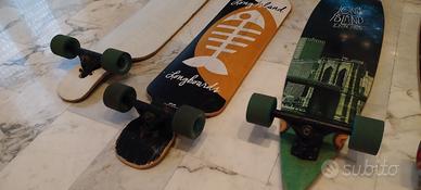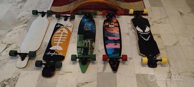 Vendo 5longboard,i primi 4 da sinistra sono della Longisland,usati ben tenuti,con track della Bear da 180mm. Il primo a destra è nuovo,tavola concava per baricentro basso,adatto a persone non superiori ai 63kg.Prezzo trattabile Per informazioni chiamare dopo le 21,o tramite mail o messaggi o whatsApp