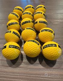 Lotto di 15 palline da golf di colore giallo, con la scritte stampata. - palline USATE - Colore: Giallo - Scritta: SOLO range/rangeking stampate