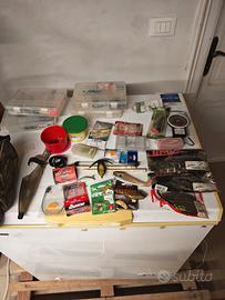 🛠️ ACCESSORI COMPLETI:Zaino Fish&Fish camo con Porta canne + scomparto removibile, Borsa porta pesci Caperlan Isolante 12LKit esche – Gomme, topspinner, vermoni, ami n.4, 4 vaschette, pesa pesci Nassa metallica (funzionante arrugginita ), Valigetta cassettiera metallo – 5 cassetti ti puoi sedere sopra buono stato, Guadino Carson con buchi sulla rete, 3 portacanna –di cui 1 artigianale Y + 2 normali SOLO RITIRO A MANO PROVINCIA DI CUNEO SI VALUTA PROVINCIA DI TORINO PREZZO TRATTABILE NON DIVIDO LA MERCE