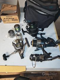 ⚙️ MULINELLI (4):Camor T-Max KD60Shakespeare Omni 30 FS (doppia bobina)Mitchell Avocet Bronze III 4000FD (2 bobine)Barbetta Attack 3000 (doppia bobina)