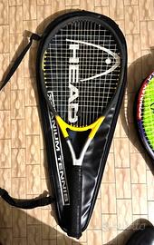 Lotto di sette racchette (6 da tennis e una da squash) con custodia, dentro a borsone originale Nike.