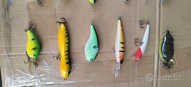 Lotto come un foto 12 esche artificiali snodate e non da pesca rapala shimano minnow cucchiani etc da persico luccio trota siluro