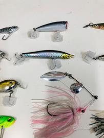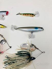 Lotto esche hardbait bass fishing. Popper, jerkbait, shallow crank, spinnnerbait e ondulanti. Ottimo per iniziare