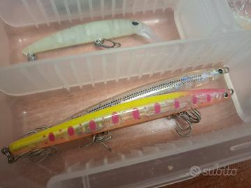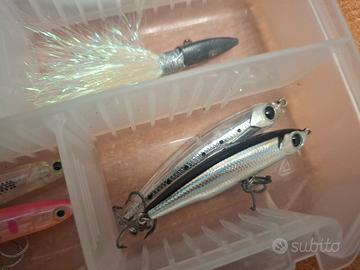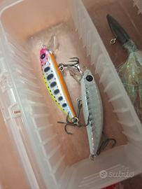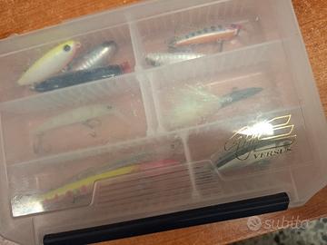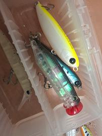 1 Cassettina versus 1 popper da 7 cm 2 wtd da 6 cm 2 jerk da 5.5 cm 2 lippless da 11 cm 2 lippless da 6 cm 1 bucktail Tutte esche nel range dei 10 gr