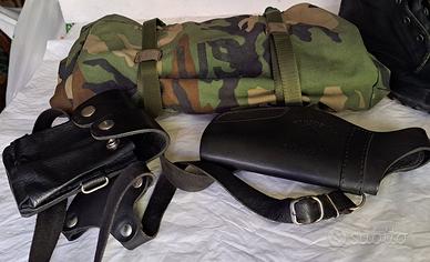 Lotto di materiale usato per softair composto da scarponcini anfibi in tela e gomma con chiari segni di usura e del tempo come da foto, lo zaino è stato riparato e modificato, la fondina con porta caricatori è in pelle. Gli scarponcini sono numero 42. Zaino di dimensioni 25 cm x 37 cm x 40 cm circa, proviene dalle Forze armate USA di tessuto morbido si piega occupando pochissimo spazio. Si aderisce ai consigli di Subito.it per la vendita, contatti solo via email, non per telefono, no ad altri siti. Possibilità di spedizione e di visionarlo. Prezzo € 60. A richiesta spedizione.