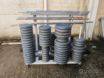 Lotto pesi in plastica completo – 28 bilancieri + 71 dischi+rastrelliera