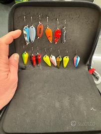 LOTTO SPOON COMPRENSIVO DI 26 SPONN, ASTUZZIO MOLIX, SCATOLINA SAKURA CON DENTRO SNAP DI VARI TIPI E ALCUNI AMI. NON TRATTABILE no Daiwa Favorite Herakles Rodio Craft Rodiocraft Molix Megabass Yarie Evergreen Tailwalk Zenaq Forest Tubertini Trabucco Colmic Jackall Seika Italica Abu Garcia MajorCraft Si adatta a spoon e crank Valkein Nories Rob Lure Neo Style Antem Dohna o Dhona New Drawer Velvet Arts Nomura Timon Daysprout Adattabile a cassette plano Meiho o Mehio plano Dream Master da pesca Trota Trout area o spinninge