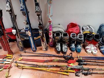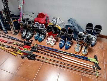 Lotto svuota cantina di scii, scarponi e bastoni