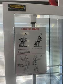 La Lower Back consente di allenare in modo specifico la muscolatura lombare come il quadrato dei lombi e gli erettori del rachide, vengono coinvolti anche i glutei quali estensori dell'anca.