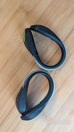 Due clip per le caviglie da indossare sulle calze o sulle scarpe. Dotate di pulsante con due funzioni: luce fissa, luce intermittente. Impermeabili.