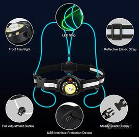Luce da Corsa, Luce da Running,LED Ricaricabile Tramite USB Luce per Corsa Notturna,Luce Sette Colori Cinghie, 5 modalità di illuminazione Luce Running per Jogging, Passeggiate, Sport all'Aria Aperta.