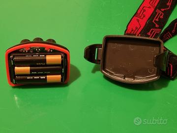 Frontale Decathlon Geonaute con luce LED regolabile in quattro intensità. Elastico regolabile. Impermeabile all'acqua. Possibilità di regolare inclinazione del fascio di luce. Posso vendere singolarmente (5euro), o in coppia (10euro).