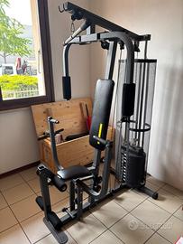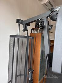 Macchina multifunzionale, possibile svolgere leg extension, lat machine, bicipiti (non ho foto ma posso farla a richiesta) in appoggio, e spinte per il petto (bench press) unite a pectoral machine (croci al macchinario). Pacco pesi fino a 50kg ma con buona resistenza di base soprattutto per gambe e schiena. Vendo per liberare posto nella mia palestra.