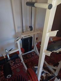 Macchina per esercizi molto pesante e robusta con i cuscinetti in ogni snodo o puleggia. Bicipiti, tricipiti, cosce, polpacci, deltoidi, pettorali, dorsali, glutei, ecc. ecc. 90 Kg di Lat Machine più molte pizze di diverso peso. La pagai molto e la rivendo a 200 euro non trattabili. Roma Est - Ponte di Nona Non spedibile.