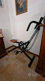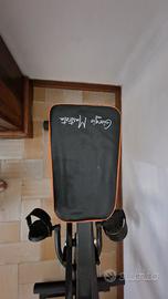 Macchinario multifuzione da palestra, pieghevole, Total Power Crunch firmato Giorgio Mastrota. Colore nero, in acciaio. Pesa circa 9,5 kg e ha una portata di 120 kg circa. Lunga circa 1 mt, ed alta circa 1,2 mt.
