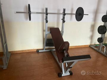Vendo in blocco i seguenti attrezzi per palestra TECNOGYM della linea SILVER tutte in buonissimo stato-Pulley— Mutipower- Cavi incrociati- panca inclinata- panca regolabile- bilanciere da duemetri -28 di spessore con 150 kg di pesi con protezione in gomma foro 28. Supporto porta pesi - due barre lunghe da usare sulla Lat o Pulley, 120 cm e 90 cm - due barre medie da 60cm- e due barre corte x tricipiti. Serie di manubri fissi e componibili da 10 kg fino a 20kg e altri accessori vari. Il prezzo complessivo è di 2.500 € . Il trasporto è a carico dell’acquirente che l’organizza come vuole. Per qualsiasi ulteriori informazioni sono a disposizione, chiamate pure. Vi prego non offendetemi con offerte ridicole.