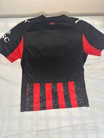 Classiche strisce rossonere rivisitate con una texture moderna. All’interno del colletto è presente un dettaglio celebrativo dedicato ai 125 anni del club.