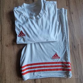 Maglia sportiva Adidas da ragazzo, colore bianco con dettagli rossi, tessuto tecnico tipo Climalite leggero e traspirante. Condizioni: usata ma in buono stato generale, senza difetti evidenti. Inclusi pantaloncini Adidas coordinati in regalo. I pantaloncini hanno elastico lento e risultano leggermente più scuri rispetto alla maglia, per questo vengono considerati come extra. Loghi Adidas presenti su entrambi i capi. Taglia S (vestibilità da ragazzo).