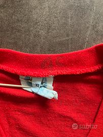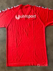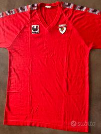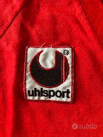 Maglia da allenamento Unione Sportiva Cremonese prodotta da Uhlsport, manica corta, taglia XL. Databile ai primi anni 90 (92/93), caratterizzata dall’assenza dello sponsor sul petto con solo la scritta dello sponsor tecnico sulle spalle e logo ripetuto nella striscia sulle maniche. Materiale lanetta, tipico del periodo. Scudo della società e marchio Uhlsport sono toppe a ricamo cucite e di ottima qualità. Si intravede nel colletto all’interno un numero probabilmente scritto per ragioni logistiche dal magazziniere, come si nota su altri esemplari simili, a testimoniare la storia vissuta del capo. Maglietta molto bella, tonalità Rossi vivace, ci sono affezionato ma mi piace vivere queste magliette e la XL purtroppo non la metto. Lo considero un bel capo da collezione e data l’età della maglietta è ancora in buonissime condizioni