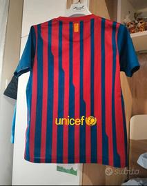 Maglia del Barcellona da bambino presenta il logo del Barcellona e della Nike sulla parte frontale,lo sponsor nella parte posteriore e il logo della lega sulla manica. taglia m da bambino in ottime condizioni