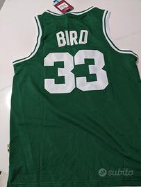 Maglia da basket dei Boston Celtics di Larry Bird, numero 33, della serie Swingman che Adidas fece alcuni anni fa. Taglia S, veste bene una taglia 48. Mai usata, con etichette. Come quasi tutte le maglie simili in commercio vendute a prezzi simili credo si tratti di una copia, ma e' veramente ben fatta in tutti i dettagli: logo NBA in alto a sinistra, numeri e lettere cuciti (non sono incollati ne' stampati). La vendo causa doppio regalo (ho detto a troppe persone che avrei voluto quella maglia...).
