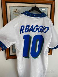 t-shirt stile vintage da calcio Roberto Baggio 10 taglia M iconica maglietta Italia 1994 bianca con loghi FIGC CALCIO NOSTALGIA