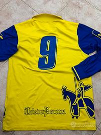 Vendo maglia del chievo verona con la numero 9 Maglia che presenta qualche segno del tempo ma in condizioni ok Presenta una piccola macchia rossa sulla spalla destra al posteriore, ho provato col vanish ed altre robe ma é andata via poca roba rispetto alla foto (l’ho lavata dopo le foto) Prezzo trattabile Maglia unica nel suo genere