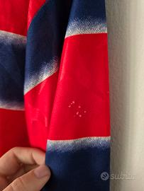 Maglia calcio Devis del Crotone, risalente alla stagione calcistica 1998-99. Rara versione con colletto con lacci. Si fa notare che la maglia è stata tagliata nella parte inferiore e ricucita artigianalmente, probabilmente ad opera del giocatore stesso. Condizioni generali molto buone nonostante l'età, con segni di usura e del tempo visibili in foto. Taglia indicata: XL