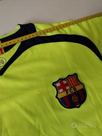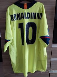 Maglia da calcio FC Barcelona originale Nike, stagione 2004/2005, modello away giallo fluo, con nome e numero Ronaldinho 10.