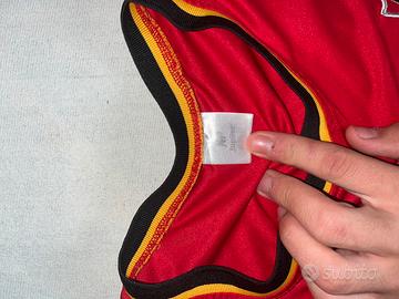 Vendo maglia da calcio dell’ azienda jupiler, produttrice di birre. È rossa, a maniche corte, con dettagli neri e gialli.