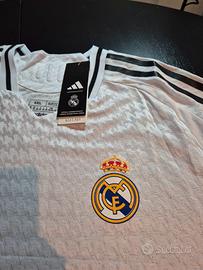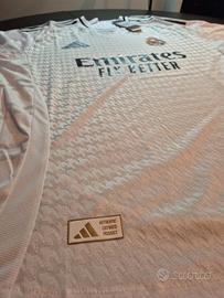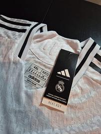 ORIGINALE Maglia a maniche corte Real Madrid Home stagione 24/25 Adidas. Nuova con cartellino. Taglia 4XL ma vestibilità aderente. Scollo a V. Tecnologia HEAT.RDY con stemma del club applicato a caldo. Jacquard, 100% poliestere riciclato.