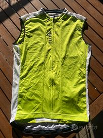 Canottiera da ciclismo aderente Marca RH+ Usata una volta Molto leggera e traspirante Tre tasche più una tasca con cerniera Verde fosforescente e bianco Taglia L Per quanto riguarda la taglia io porto una L ed è bella aderente quindi la consiglio ad uno che porta la M se la vuole più comoda