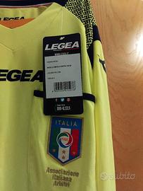 Maglia da arbitro ufficiale AIA Legea a manica lunga, di colore giallo. Nuova con cartellino. Taglia S.